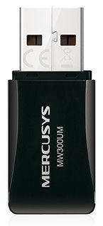 Bezdrátový adaptér Mini USB USB MW300UM umožňuje připojení počítače nebo notebooku k bezdrátové síti rychlostí až 300 Mb/s. Navíc díky své soft AP funkci může přeměnit počítač nebo notebook na hotspot Wi-Fi, pokud používáte stávající kabelové připojení.