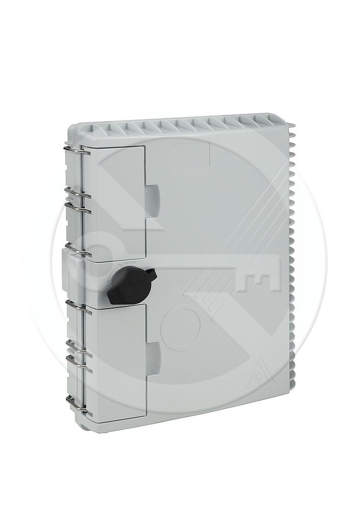 Optický nástěnný box slouží k ukončení optických kabelů ve venkovních i vnitřních instalací. Tento optický box se vyznačuje vysokým stupněm krytí IP65. Povrch optického nástěnného boxu je UV odolný. Je možno jej upevnit na sloup nebo za pomocí montážní sady přímo na zeď. Optický box umožňuje ukončit až 16 vláken v kombinaci adaptérů 16xSC simplex nebo 16xLC duplex, popřípadě 16xE2000. Obsahuje 2x vstup pro optické kabely s gumovou krytkou v provedení mid-span tzn., že je možné ukončit i průběžně instalovaný kabel bez nutnosti přerušení všech vláken v kabelovém svazku. Výstup disponuje 16-ti otvory pro patch kabely, které jsou opatřeny gumou krytkou. Při umístění optického patch kabelu do boxu je nutno naříznout podélně gumovou krytku a zatáhnout ji zpět společně s patch kabelem do otvoru optického boxu. Součástí optického boxu je i horizontální vyklápěcí dno, zajišťující snadnější manipulaci při ukončení a vyvázání pigtailů. Samotný box je uzamykatelný.
