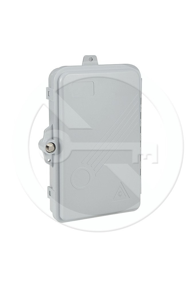 Optický nástěnný box slouží k ukončení optických kabelů ve venkovních i vnitřních instalací. Tento optický box se vyznačuje vysokým stupněm krytí IP65. Povrch optického nástěnného boxu je UV odolný. Je možno jej upevnit přímo na zeď za pomocí montážní sady. Optický box umožňuje ukončit až 4 vlákna v kombinaci adaptérů 4xSC simplex nebo 4xLC duplex, popřípadě 4xE2000. Obsahuje 1x vstup pro optický kabel s gumovou krytkou. Výstup disponuje 4 otvory pro patch kabely, které jsou opatřeny gumovou krytkou. Při umístění patch kabelu se nařízne gumová krytka a patch kabel se vsune dovnitř. Součástí optického boxu je i vertikální vyklápěcí dno, zajišťující snadnější manipulaci při ukončení a vyvázání pigtailů. Samotný box je uzamykatelný.
