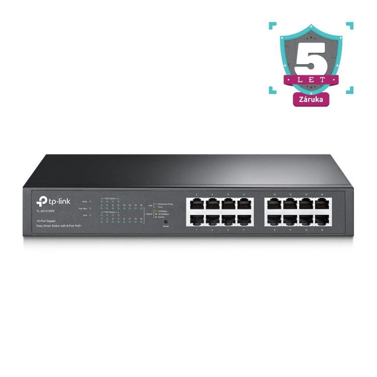 Switch TL-SG1016PE, který lze použít jako stolní nebo jej instalovat do racku, má 16 gigabitových portů, z nichž 8 podporuje standard PoE+. Switch poskytuje jednoduchý způsob rozšíření kabelové sítě přenosem napájení a dat přes jediný ethernetový kabel. Díky celkové kapacitě napájení 110 W, čili 30 W na jeden port, může switch TL-SG1016PE napájet více zařízení s vysokým výkonem, jako jsou bezdrátové přístupové body (AP), IP kamery nebo IP telefony. Switch TL-SG1016PE navíc pomocí inovativní energeticky efektivní technologie dokáže ušetřit až 75 % spotřeby energie, což představuje ekologické řešení pro vaši firemní síť.